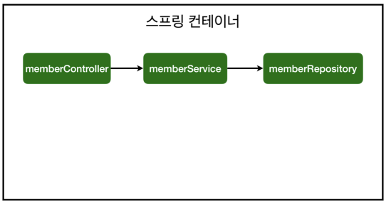 이 과정을 통해 아래 의존관계를 가지게 된다. 위 과정을 간략하게 말하자면 @Component는 스프링 빈으로 등록하는 역할, @Autowired는 해당하는 스프링 빈을 찾아서 연결해주는 역할을 하는 것이다.