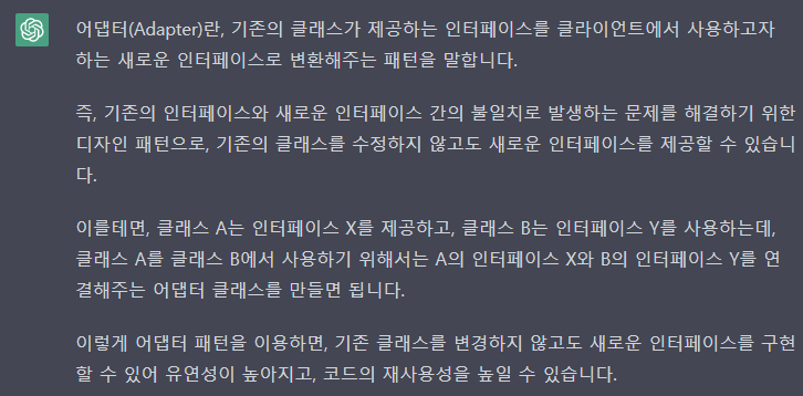 책에서는 어댑터와 비슷한 구조로 아래 예시를 사용하였다.